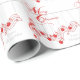 Os enfeites elegantes da bola de Natal cobertos em rendas vermelhas com arcos vermelhos e aparas prateadas em um funcionarios musical são apresentados neste nome único e personalizado papel embrulho de presente de Natal. O belo e vintage tom de rendas vermelhas das estrelas entrelaçadas e flores nos Enfeites de natal lembra o antigo artesanato do fazer de rendas. Personalize com seu nome usando o modelo fornecido. Design original do Anura Design Studio.