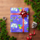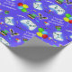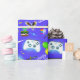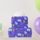 Este papel personalizado de empacotamento de aniversário apresenta um ousado controlador de jogos em um mundo vibrante cheio de bolo "Nível Superior", confete, balões, dragões, aviões e muito mais.