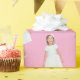 This custom kids birthday wrapping paper allows you to add your own photo and easily change the background color to match your selected image or party theme.