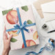 Papel De Presente Pêssegos e Blossomas de Aquarela Botânica