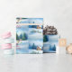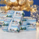 Peter o coelho numa paisagem nevada com uma casa de pão de gengibre, boneco de neve e pop de molho
