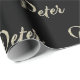Sehr schönes edles personalisiertes Geschenkpapier im whitegold Lettering Look auf schwarz für Peter.