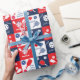 Papel De Presente Pickleball Vermelho Branco Engraçado Padrão Azul