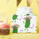 Picles verdes dançando com notas de música, óculos laranja e sombrero mexicano em um fundo branco.
