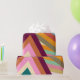 Este papel de embrulho tem um design retrô dos anos 1970 é feito de Vs invertidos em camadas em três lugares, todos em cores retrô.