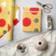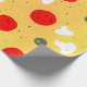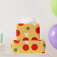 Folha de presente para festa de pizza, celebração, aniversário... O vetor suculento fez pizza com crosta crocante, queijo, salame, cogumelos champignon, azeitonas e um borrifo de oregano.