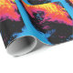 cabeça de monstro colorida que vive nos estados de plástico num mar de azul