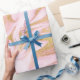 Papel De Presente Pincéis Ouros Brilhantes do Mármaco Branco rosa