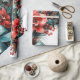 Papel De Presente Pine Wreath com Flores Vermelhas e Holly
