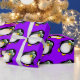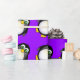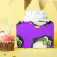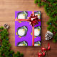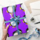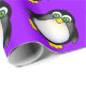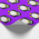 Pinguim bonito super dos desenhos animados com os olhos googly verdes em um fundo roxo. Papel de envolvimento perfeito para os aniversários do miúdo.
