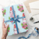 Papel de embrulho com um design bonitinho e caprichoso, com um pinguim adorável vestindo um chapéu de santa vermelho. Ficando atrás de um buquê de flores com canas doces listradas cor-de-rosa e branca.