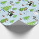Papel De Presente Pinguim de Natal patinando no gelo e pescador de u