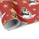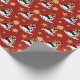 Papel de embrulho de Natal com uma ilustração de um pinguim imperador sorridente com um chapéu vermelho de Papai Noel; design de desenho de Natal para crianças; design de desenho de Natal para crianças, em fundo vermelho com modelo de texto personalizável para seu nome ou mensagem; ilustrado por Radka Kavalcova