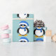 Crianças Ideia de presente de decoração de árvores do Natal - Óptica ilustração de pinguim preto e branco com chapéu azul, óculos de sol e cachecol.