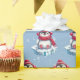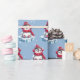 Um pinguim de aquarela fofo sentado em um icebergue vestindo um cachecol vermelho, chapéu, e algemas com flocos de neve.