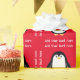 O pinguim-bebê bonito está descansando no antártico. Cor de fundo e textos personalizáveis.
