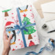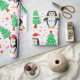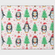 Papel De Presente Pinguins engraçados de Natal com árvores de Natal
