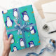 pinguins que jogam o golfe no marinho, no azul e no verde limão