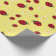 Um padrão de ladybug bonito com desenhos desenhados à mão de insetos femininos e margaridas em um fundo amarelo de nascimento.
