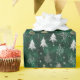 Um design elegante com pinheiros Dourados, flocos de neve prateados e galhos num fundo verde caçador!