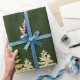 Presente de embrulho elegante com fundo verde escuro e silhueta de pinheiro dourado. Perfeito para embrulhar presentes para ele.