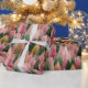 A chic and festive design featuring gold and white Christmas tree branches on a soft pink background with snowflakes and stars. Perfect for holiday decor, seasonal gifts, and elegant winter celebrations with a modern, feminine twist.