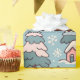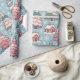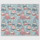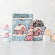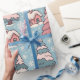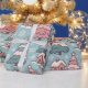 A Pink House And Christmas Tree Wrapping Paper On Pastel Blue With Snowflakes