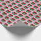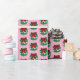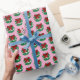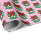 Christmas wrapping paper with festive green floral wreaths and red bows. The design comes in a pink or white background.