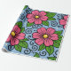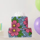 Papel De Presente Pink Florals with Green Leaves and Curved Details