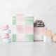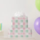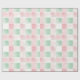 Este padrão verde-claro e cor-de-água rosa teve origem no '50. É uma peça retrógrada ao estilo gingham pastel leve e arejada, com quadrados brancos também. É uma boa escolha de um rolo para o seu papel de embalagem de presente de Natal. Especialmente se você gosta de designs sutis ou se diverte como fundo para arcos ou ornamentos festivos brilhantes.