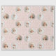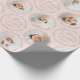 Christmas gift wrapping paper feature modern Merry Christmas script and botanical leaves wreaths, with personalized family name and 6 photos in blush pink and gold, simple and elegant.