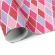 This fun geometric pattern, a traditional harlequin arrangement of diamond shapes, is colored in a romantic theme with pinks, red, and purple. The feminine color scheme is ideal for Valentine's Day gifts, or will delight your little girl or favorite woman on her birthday or any other occasion.