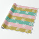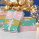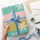 Papel De Presente Pink Teal and Gold Stripes With Snowflakes