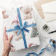 What is cuter than pink teddy bears? We can't think of much, especially when they delightfully dress up your Christmas wrapping paper designs. These retro holiday patterns are in watercolor. The little cuties feature whimsical red Santa hats and decorated Christmas trees on a nice roll, just right for your gift-wrapping.