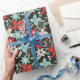Papel De Presente Pintado Natal Poinsettia Red White Aqua