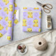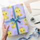 PAPEL DE PRESENTE PINTINHOS DE PÁSCOA AMARELO COM OVOS PURPOS