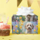 Um cão alegre senta-se pacificamente sobre a relva verde-luxuosa, rodeado por primavera coloridas floridas sob um céu azul macio. Esta pintura digital de óleo captura um momento sereno com pinceladas expressivas, cores quentes e um senso de alegria gentil.
