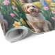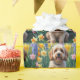 Um cão alegre senta-se pacificamente sobre a relva verde-luxuosa, rodeado por primavera coloridas floridas sob um céu azul macio. Esta pintura digital de óleo captura um momento sereno com pinceladas expressivas, cores quentes e um senso de alegria gentil.