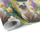 Um Gato alegre senta-se pacificamente sobre a relva verde-luxuosa, rodeada por primavera coloridas floridas sob um céu azul macio. Esta pintura digital de óleo captura um momento sereno com pinceladas expressivas, cores quentes e um senso de alegria gentil.