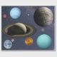 Mercúrio, Vênus, Terra, Marte, Júpiter, Saturno, Urano, Netuno e o planeta anão Plutão são os planetas em nosso sistema solar e que variedade de planetas eles são, desde gigantes gasosos até a Terra do planeta aquoso, e do Mercúrio árido a Plutão gelado. (Observe que estes não podem ser dimensionados)