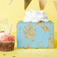 Papel De Presente Plantas e Folhas Pálidas em Azul e Dourado