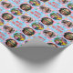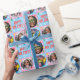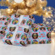Papel De Presente Playful Custom Photo Text Retro Blue Christmas