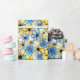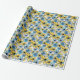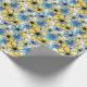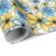 Papel De Presente Playful Retro Floral Patterno, Azul Suave e Amarel