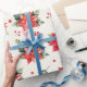 Este charmoso papel de embrulho de Natal apresenta uma design de poinsetos vermelhos aninhados entre as bagas vermelhas e o verde.