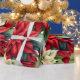 Flores de poinsettia vermelha e branca, estrela de Natal, arte floral.