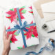Poinsettia, floral vermelho, cor d'água papel de embalagem de Natal. Flores vermelhas e verdes, festivas, papel de embrulho de Natal.