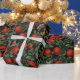 Ramais românticos com folhas esmagadas e frutas ricas vermelhas se esticam sobre um fundo preto. Uma camada secundária desaparece sutilmente, adicionando profundidade. Tradicionalmente pintados em papel com marcadores, os elementos são digitalizados e compostos em padrão no Photoshop.