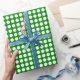 Um papel de embrulho projetado com um padrão de ponto branco sobre um fundo verde. Personalize o plano de fundo verde entre outras opções.