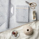 Este invólucro de presentes de papel de embrulho apresenta um padrão moderno e constante, com pontos de falso brilho prateado sobre um fundo de cinza macia.