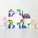 Um design com pontos de interrogação divertidos com preenchimento de gradiente de arco-íris e traços pretos pesados.